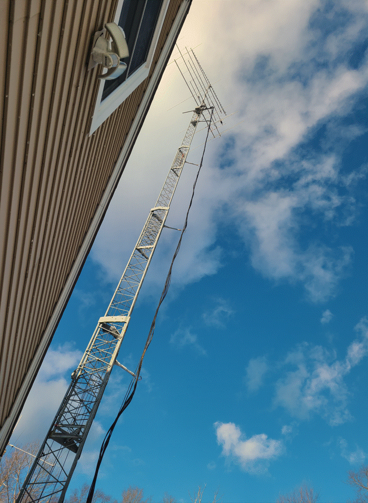 Some minor antenna repairs and adjustments are still pending, but the antenna system is on-the-air on 6 and 2 meters (both FM and SSB/CW).